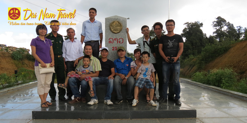 Cả đoàn chụp ảnh lưu niệm tại Cột mốc 255 cửa khẩu Loóng Sập