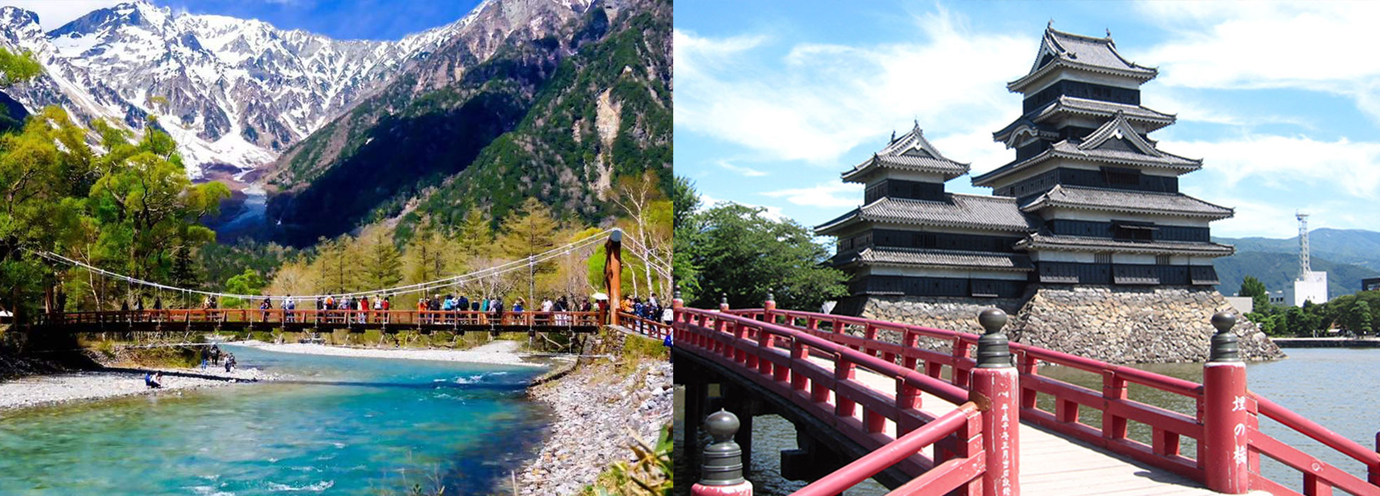 Khu du lịch Kamikochi: được coi là “Thụy Sỹ trong lòng Nhật Bản”, nằm trên dãy Alps phía Bắc Nhật, là ngôi nhà của những phong cảnh núi non lộng lẫy bậc nhất của Xứ sở Mặt trời mọc. Quý khách sẽ vô cùng ấn tượng với cảnh đẹp hùng vĩ nơi đây.