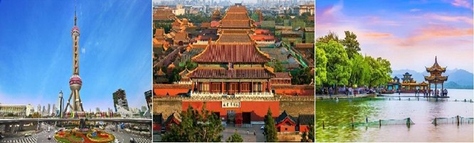 Chuyến du lịch sẽ đưa du khách đến thăm các di sản thế giới mang đậm nét văn hoá, lịch sử của đất nước Trung Hoa rực rỡ. Thăm Cố Cung (Tử Cấm Thành) với 9999 cung điện nguy nga, nơi cư ngụ của các Hoàng đế Trung Quốc trong suốt gần 500 năm, thăm Vạn Lý trường thành - một kỳ quan duy nhất của thế giới được nhìn thấy từ mặt trăng, nơi đây đã từng chứng kiến gần 1 triệu lần cảnh mặt trời mọc. Thăm quan Hàng Châu với Tam Đàn Ấn Nguyệt, Tây Hồ Hàng Châu “Trên có thiên đàng, dưới có Tô Hàng”. Tô Châu - Thành phố ở tỉnh Giang Tô, nằm ở hạ lưu sông Dương Tử, nổi tiếng với những cây cầu đá đẹp và các khu vườn cổ được thiết kế tỉ mỉ đi. Ghé thăm Tây đường Cổ trấn một trong mười trấn cổ nổi tiếng nhất Trung Quốc. Thăm thành phố Thượng Hải sôi động và hiện đại với Bến Thượng Hải, tháp truyền hình Đông Phương Minh Châu. Phố Nam Kinh và Chùa Phật Ngọc.