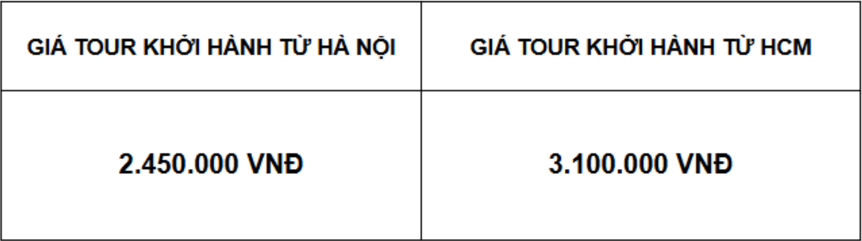 - Trẻ em dưới 5 tuổi miễn phí giá tour, bố mẹ tự lo cho bé